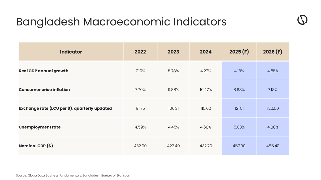 Ramnivas Mundada, Director of Economic Research and Companies at GlobalData, comments: “Bangladesh’s near-term outlook is increasingly exposed to confidence shocks and supply frictions. With growth moderating since 2022, any further deterioration in predictability, whether through visa restrictions, port congestion, or policy tightening, could weigh on demand and amplify downside risks to the broader outlook.”